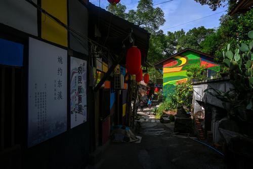 ▲9月24日,綦江区东溪镇,老街上的破旧的老房在艺术家志愿者们的手中变得焕然一新充满活力。
