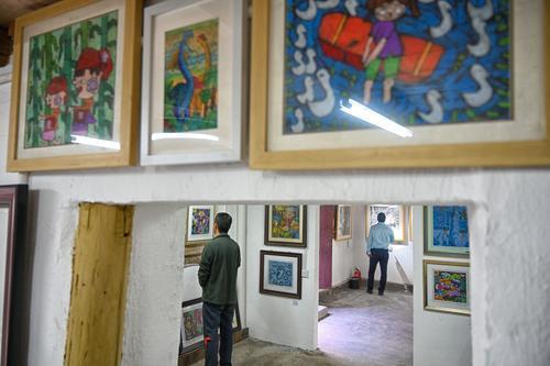 ▲9月24日,綦江区东溪镇,市民们在居民舍院改造的美术馆里参观綦江农民版画展。