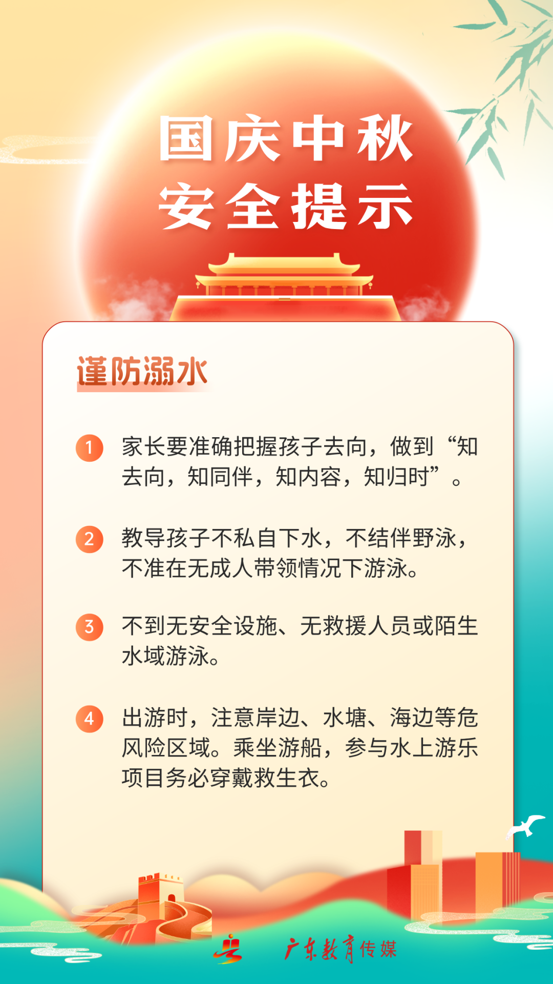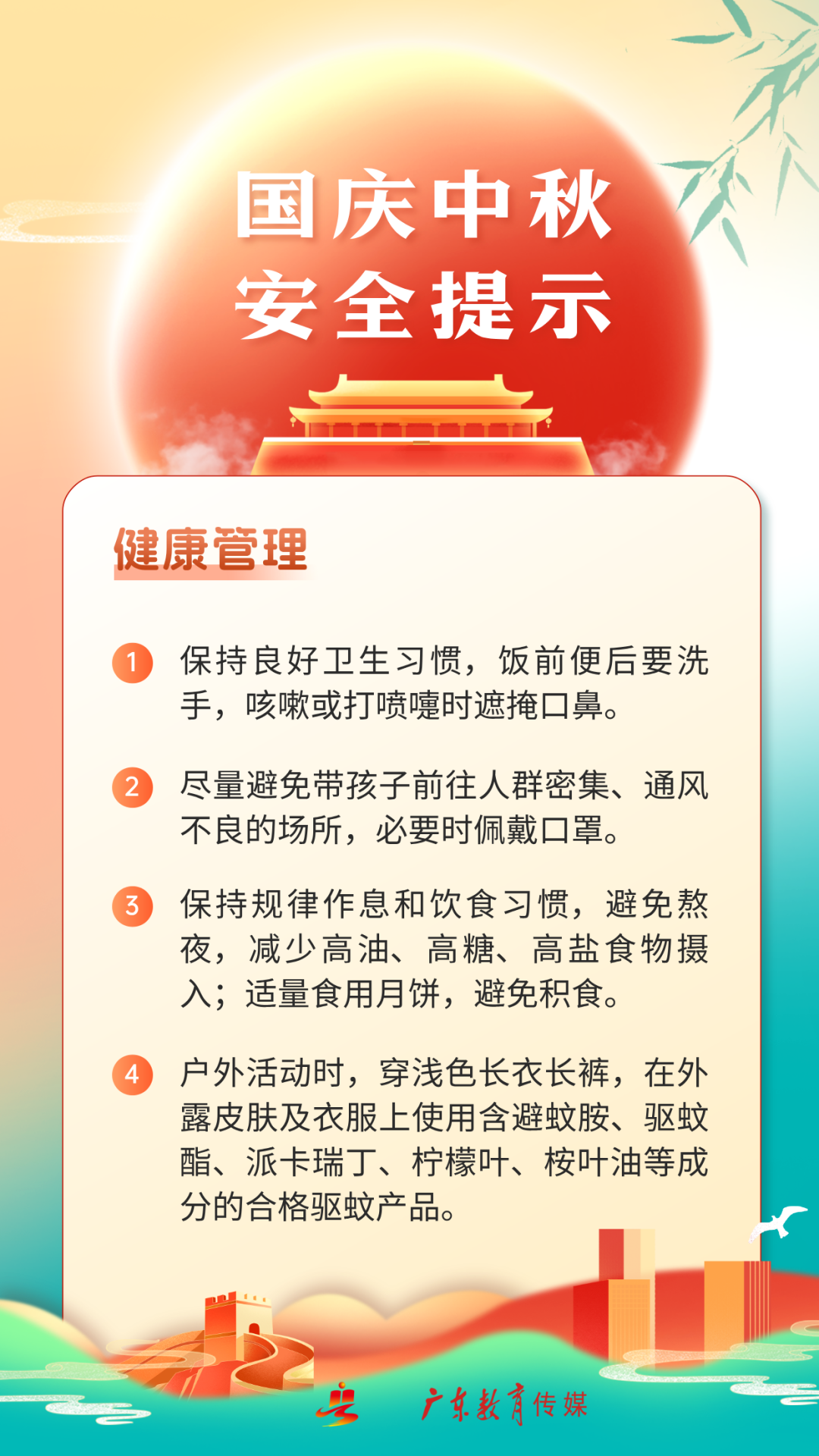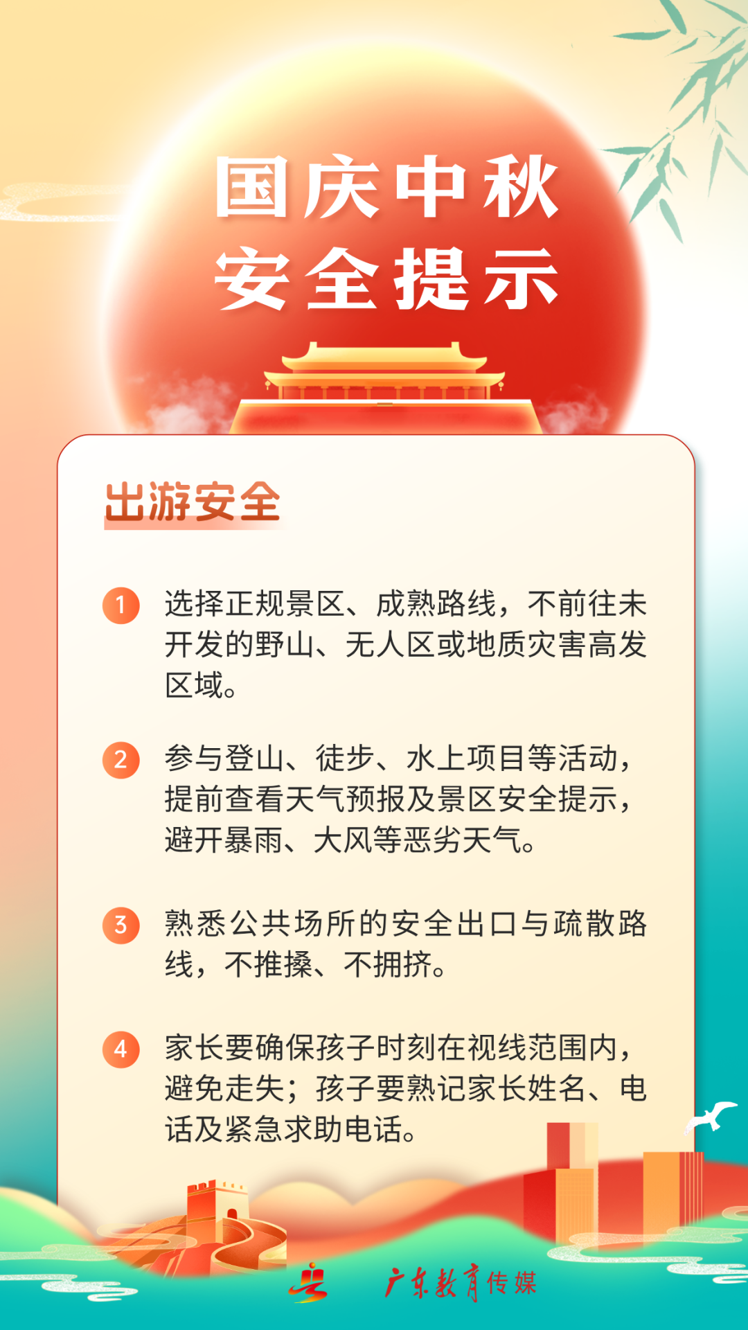 国庆假期恰逢中秋,在欢乐团聚的同时,别忘了将安全放在心间。
