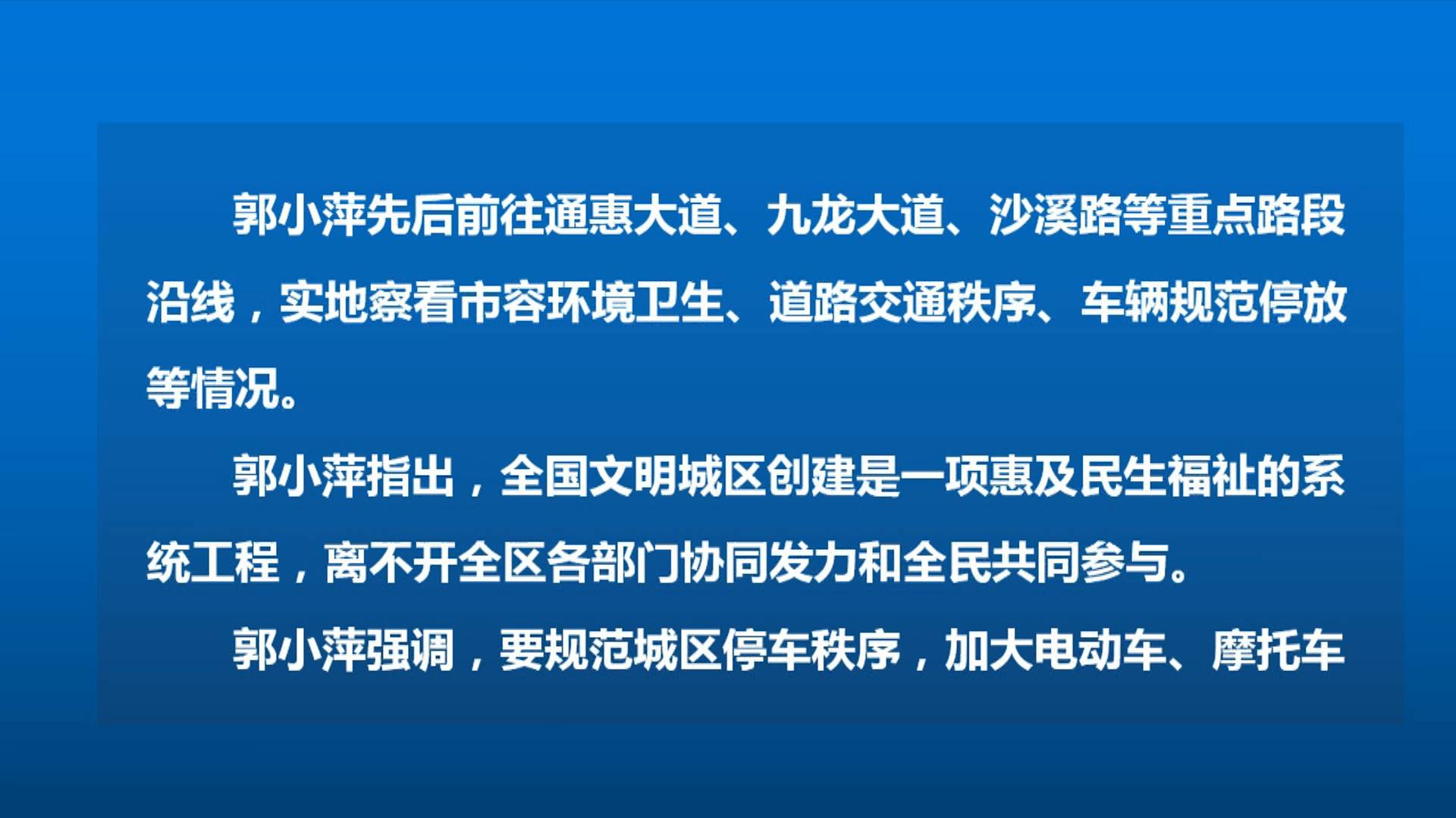 郭小萍调研督导全国文明城区创建工作
